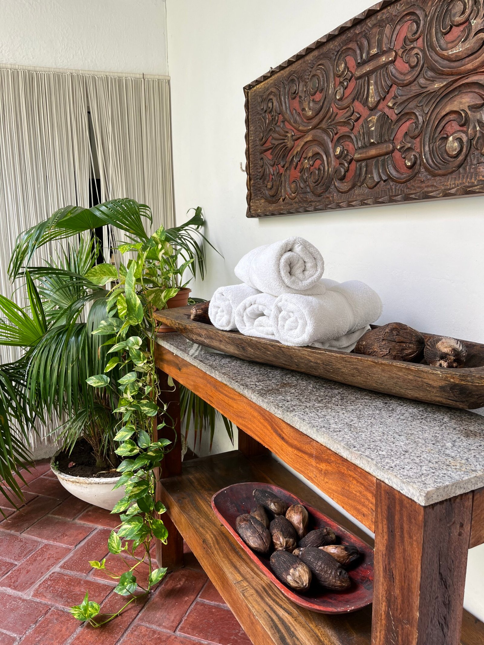 La segunda habitación que mantiene el mismo estilo de la anterior, tiene una cama doble y una individual, armario empotrado, baño privado, aire acondicionado, ventilador de techo y un balconcito que asoma al patio interior de la casa.